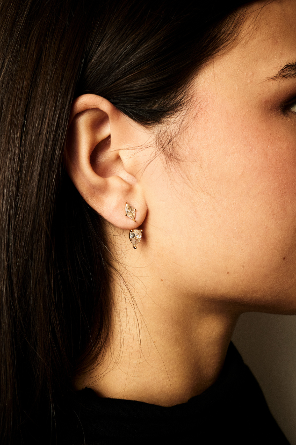 Orecchino a lobo con pendenti impreziosito da micro cristalli trasparenti